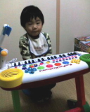 すっかりプレゼントがお気に入りのオーマ。5千円弱のオモチャとはいえ、鍵盤が37あって、音色もピアノ以外にもヴァイオリンとかベースとかオルガンとかフルートに変えられるし、ドラムの音が出るボタンもあるし、自動でリズムを演奏してくれる装置もついている。あとはヴォーカル用のマイクもついている! リズム演奏もカントリーとかポップスとかワルツとか色々選択出来る。オーマは最初、リズム演奏を一通り聞いている時に、反応はイマイチだったが、ロックのパターンになった瞬間にノリノリ♪ |